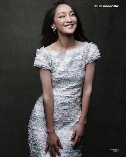 周迅再登《嘉人》 羽毛护肩蕾丝?