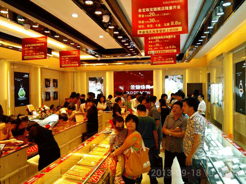 2013年9月,金龙珠宝江西上饶旗舰店盛大开业,艺术黄金吸引眼球。