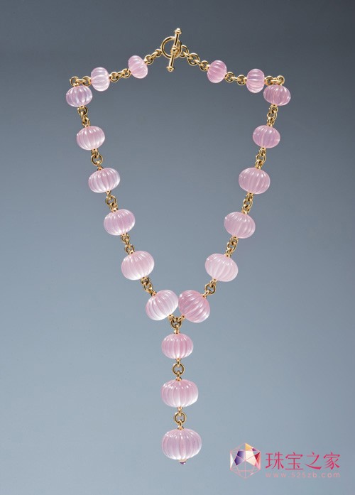 毕加索之女,Tiffany著名设计师帕洛玛•毕加索为您特别奉上精心设计的Tiffany “中国风”项链,精湛的现代工艺与高雅、古典的情趣在此融为一体。灯笼,这个代表着幸运与祥和,深具中国传统文化韵味的象征物,巧妙而完美地为帕洛玛•毕加索所捕捉,柔美的粉水晶悉心镶嵌于18K黄金链饰之上,美妙的线条宛如艺术珍品,华贵之气尽然展现。