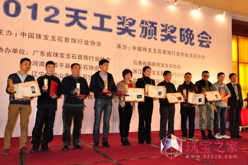 2012天工奖颁奖晚会上,中国珠宝玉石首饰行业协会常务副会长兼秘书长孙凤民为活动致辞。他说,天工奖评选活动的举办,为玉石雕刻人才开辟了一个交流技艺的平台,为优秀玉石雕刻作品打开了一扇展示的窗口,为玉石文化的普及建立了一个高起点的课堂,也为玉石雕刻艺术品走向市场提供了一个重要的渠道。十一年来,天工奖已累计入围作品4000多件,细数历程,作品不断创新、新人层出不穷,奖项越来越受到市场重视已是有目共睹。作为主办方,中宝协将秉承认真实干的态度,愿集思广益、推陈出新,将天工奖努力办成行业最重量级的奖项。