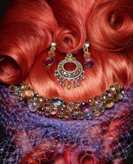 头饰与其它部位的首饰相比,装饰性最强。古代女子用花和宝钿花钗装饰发髻,华丽精巧。但是,古代的发饰太过复杂,仅宝钿花钗就分发簪,华盛,步摇,发钗和发钿。相比而言,现代的演绎更加随意和摩登,平日里的项饰、耳饰甚至手链,都可以在头发上大做文章,当然也要得益于精湛的发型手法,珠宝与美发才能上演丝丝入扣的缠绵。