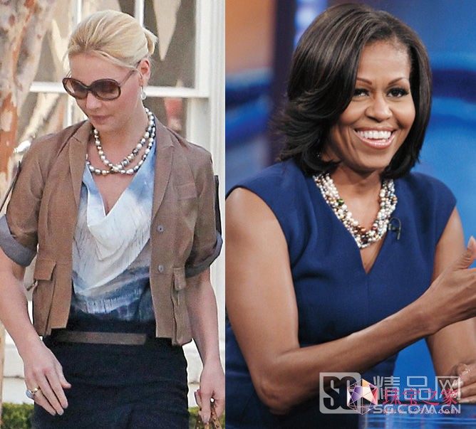 右 看美国“第一夫人”Michelle Obama的官方照片不难发现,无袖连衣裙、针织衫和双层珍珠项链俨然已经成为她的着装“名片”。
