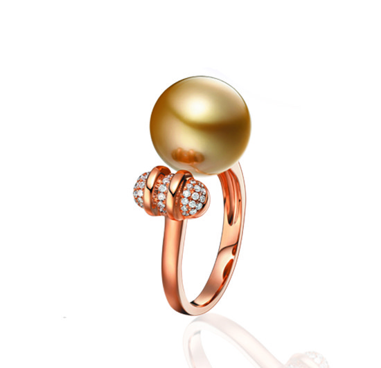 真谛珠宝“My song我的歌声”时尚珍珠系列戒指,在浑圆妩媚的南洋金珠旁,巧妙的添加袖珍18k玫瑰金话筒,让最爱的人送给你,继续为你倾吐他的心声。