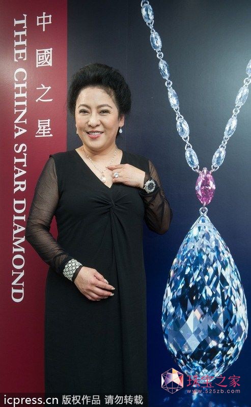 盘点世界上最贵钻石,2013年6月19日,向华强太太陈岚佩戴之前她以八千万港币投得的钻石项链“中国之星”出席发布会。这是拍卖史上最大颗顶级水滴形钻石,该钻石吊坠项链创下8600万港元(折合人民币6800万元)的世界拍卖纪录。