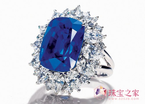 Harry Winston铂金底座蓝宝钻戒