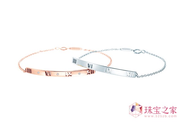 Atlas.系列手链(左起):18k玫瑰金镶钻石;纯银