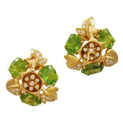 珠宝单品:橄榄石钻石黄金叶子耳环