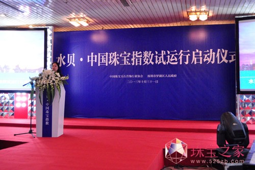 中国珠宝行业的首个国家级指数—“水贝·中国珠宝指数”试运行启动仪式,2013年10月31日在中国国际展览中心举行。中国珠宝玉石首饰行业协会荣誉会长陈洲其、中国珠宝玉石首饰行业协会常务副会长兼秘书长孙凤民、深圳市罗湖区人民政府区长贺海涛等出席了启动仪式。