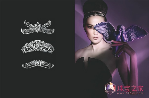 中:古董波斯风格羽翼守护兽与玫瑰花结头冠,CHAUMET
