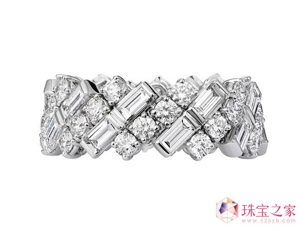 18K白金,18颗长阶梯形切割钻石(总重2.16克拉)和36颗钻石(总重1.76克拉)