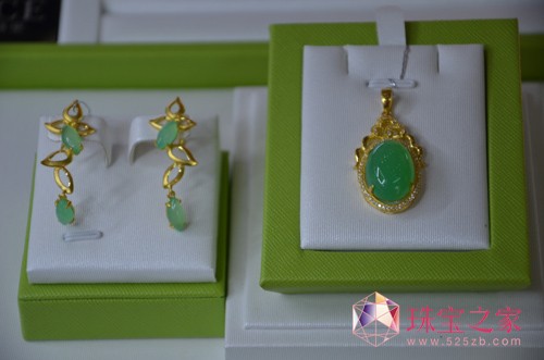 从现场展示的澳玉首饰来看,澳玉颜色呈现出明快的翠绿色、蓝绿色,有一种静谧优雅的脂肪光泽,整体色调气质和满色翡翠较为相似,所以可以作为良好的翡翠替代品,以满足国内消费市场对于高档翡翠的追求。