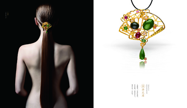 华昌珠宝延续“太极赋”系列阴阳相协、生生不息的概念,倾力打造“缠绵、厮守、脉承”三重意境,以“树”为元素,将花的绚烂,枝的缠绵,根的脉延转化为具象的艺术珠宝,配合金和玉的运用,枝与花的映衬,来丰富产品的层次感,将一种幻美跳动的唯美意境完美呈现。