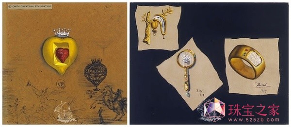 达利将超现实主义延伸到各个领域:油画,素描,蚀刻,雕塑,建筑,摄影,戏剧,电影,文学和银器,也以独特的方式来表达在珠宝设计上奇异丰富的想象。他运用黄金,铂金,宝石(钻石,红宝石,绿宝石,蓝宝石,海蓝宝石,托帕石等),珍珠,珊瑚以及其他高贵的材料,打造出心,嘴唇,眼睛,植物、动物,宗教神话符号,并赋予其以拟人化的独特形式。 萨尔瓦多·达利亲自挑选每种材料,不仅是挑选颜色或价值,更深入考虑每种宝石或贵金属的内涵和象征意义。一些珠宝,如眼睛的时间(1949),皇家心(1953),或者空间的大象(1961)被认为是他运用珠宝的绘画,已成为他的重要作品。萨尔瓦多·达利说“If you do not have an audience, without the presence of the audience, these jewelry will not create them to achieve. Therefore, the audience is the ultimate artist, in his eyes, heart and mind, or intent to instill the ability to understand the life of the creator of the large or small jewelry."