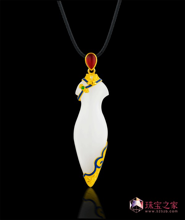 设计理念:“关心三月春,开口千金笑;惜玉怜香何时了”作品以中国传统旗袍为灵感,和田玉为主要材质,充分展现美人如玉般端庄、娴熟、温柔典雅的性情与气质。