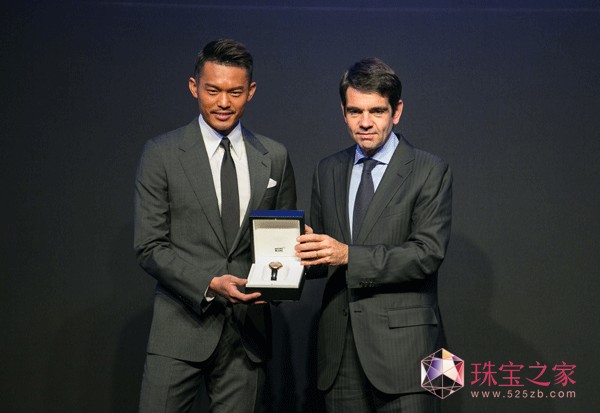 万宝龙首席执行官朗博杰(Jerome Lambert)先生宣布林丹出任万宝龙中国区品牌大使,并赠送万宝龙大班传承系列月相腕表作为礼物
