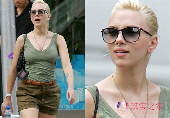 好莱坞性感女神斯嘉丽·约翰逊(Scarlett Johansson)出街LOOK,简约金色鼻环配上项链、耳钉,十分性感迷人,刚诞下女儿Rose Dorothy不久的 Scarlett Johansson 要混时尚辣妈圈了。
