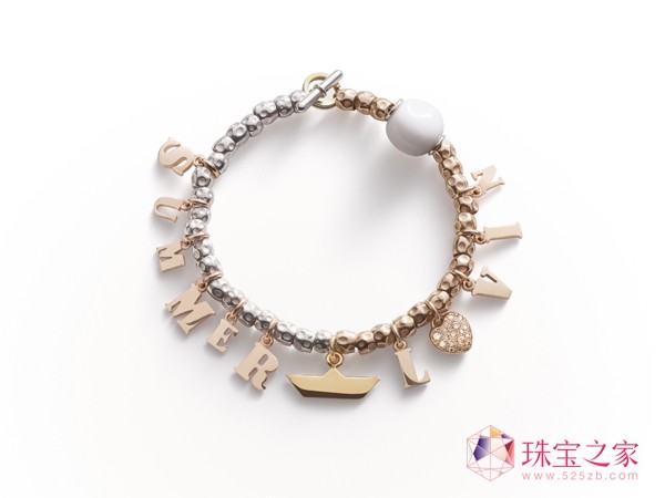 银手链配玫瑰金和银珠子/大、小字母吊饰 玫瑰金/心形吊饰 玫瑰金镶褐钻/小船吊饰 黄金/白豆豆
