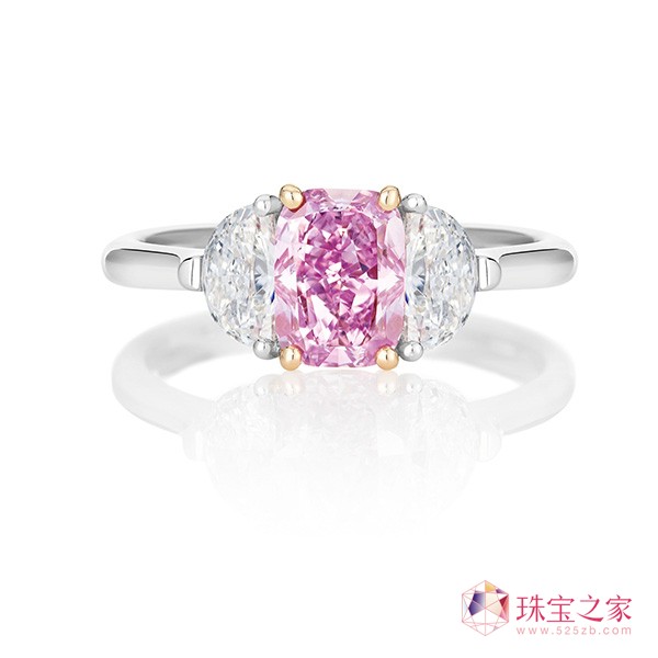 深彩紫粉长角阶梯切割半月肩单石钻戒