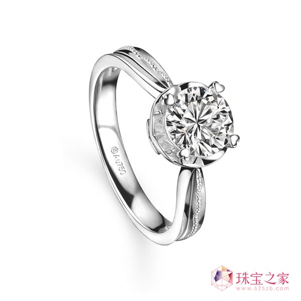 爱是缘份的相遇,让两个萍水相逢的陌路人在一幕浪漫的邂逅下,被爱牵引而变得亲密无间。 以匠心独运的心思将戒托底部缀以四颗镶嵌而成的美钻心形图案,将闪闪生辉的主石光芒照耀得更淋漓尽致。