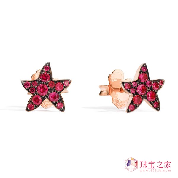 Dodo都都海星耳钉,玫瑰金镶红宝石