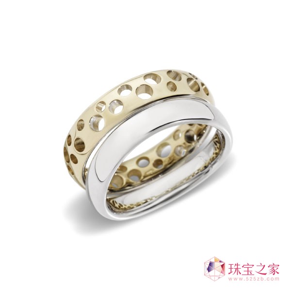 宝曼兰朵Milano系列双环戒指 ,玫瑰金和白金