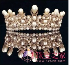 欧仁妮皇后的珍珠桂冠,1853年西班牙人赠送给欧仁妮皇后一顶王冠,上面镶有212颗珍珠和1998颗钻石。1887年这顶王冠被法国拍卖,由一个叫julius jacoby 的人出78300法郎买下。