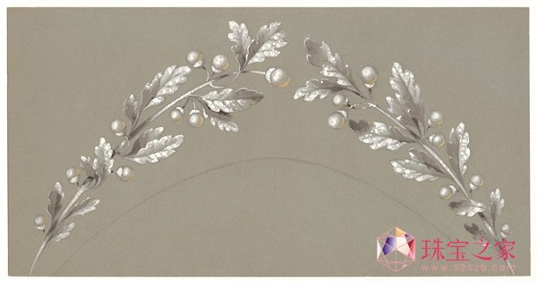 CHAUMET珍藏手绘稿 橡树叶钻冕的细节图 1900-1905年左右