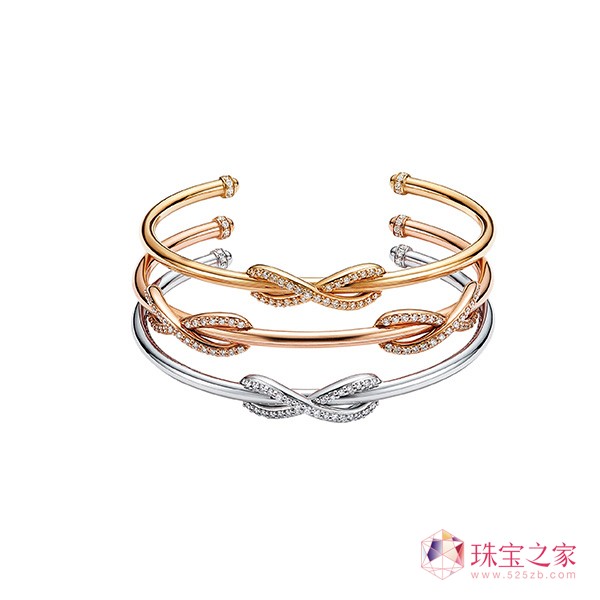 蒂芙尼Tiffany Infinity系列18K玫瑰金及18K白金镶钻手镯