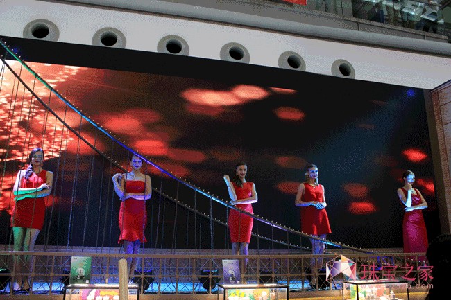 珠宝展首日,整个展会现场热闹非凡,各具特色的众多珠宝展位相继揭开了神秘的面纱,美国罗曼蒂珠宝以独具特色的纽约风情,倾力打造全新的展位形象,并以玫瑰为设计元素之一,化作美妙的玫瑰浮雕艺术墙,令人惊叹不已。整个展会还完美结合了纽约标志性的建筑,巧妙地将纽约这座艺术之城“搬”到了会展中心,营造出真实的纽约之景,浪漫幻美至极。气势宏伟的布鲁克林大桥巧妙化作独一无二的时尚T台,映衬着背后的自由女神像及纽约建筑群,引人入胜。罗曼蒂珠宝时尚、高端的展位形象人气爆棚,吸引了广大的客户的莅临参观,整个场馆被熙熙攘攘的人群挤得水泄不通,罗曼蒂珠宝极具特色的“纽约风”场馆成为整个展会现场一道亮丽的风景线。