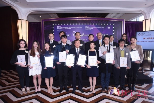 第18届香港珠宝设计比赛颁奖礼于2月20日举行的香港国际珠宝展及香港国际钻石、宝石及珍珠展记者会中举行,一众得奖者与嘉宾合照。