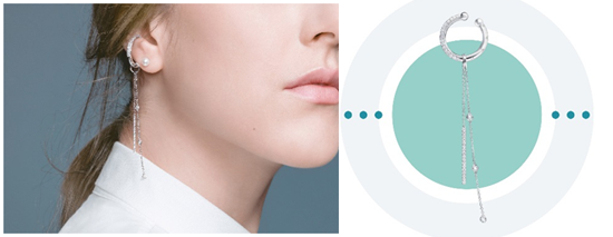 开口式18K白金耳环上缀以单排美钻,恣意挂于耳骨上,自由选择搭配款款精致的线型长垂吊耳环,轻松塑造由内而外的优雅美感。