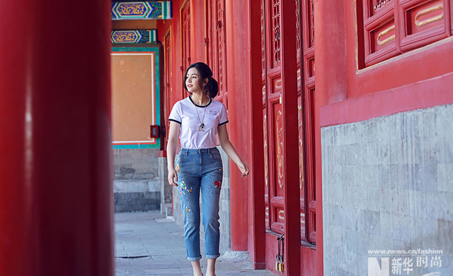 近日,陈妍希首次跨界化身珠宝设计师,她在故宫拍摄的一组写真大片也首次曝光。简洁修身的白T恤、俏皮可爱的印花牛仔裤上身,轻轻拢起马尾的陈妍希活力而充满元气,在和煦春光中漫游故宫的她亲和力十足,亲手设计的