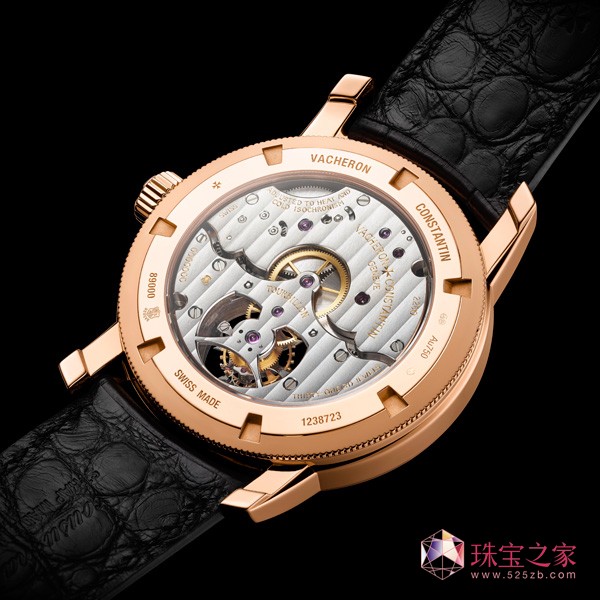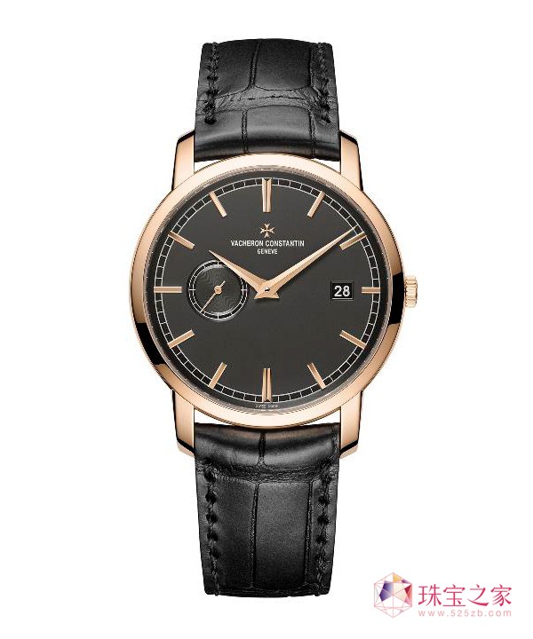 圆形阶梯式表壳、纤细表圈和凹槽底盖;轨道式分钟刻度圈,“batons de Genève”棒状时标和剑形指针: Traditionnelle传袭系列新作将该系列标志性的特色集于一身。18K 5N粉红金的温暖光泽与乳光墨褐色表盘相映成趣,亦与优雅的黑色鳄鱼皮表带完美相配。