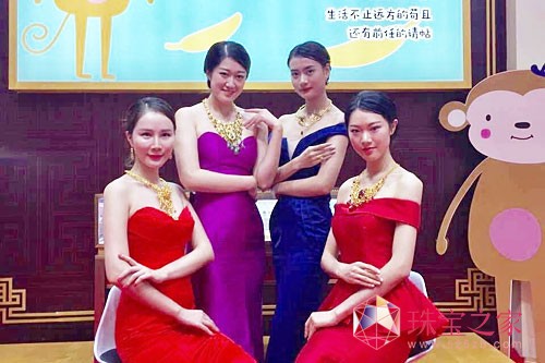 传统的金镶玉产品大都是固化镶嵌工艺,而此次,华昌珠宝突破传统,在工艺上创新变革,开辟了一条全新的时尚路线。采用动态镶嵌技术,将宝石玉黄金进行悬空灵动设计,伴随着轻微的运动,宝石便犹如星空中一闪一闪的“眨着眼睛”的繁星。别具生动与趣味的产品吸引无数客商,展馆内人群络绎不绝。