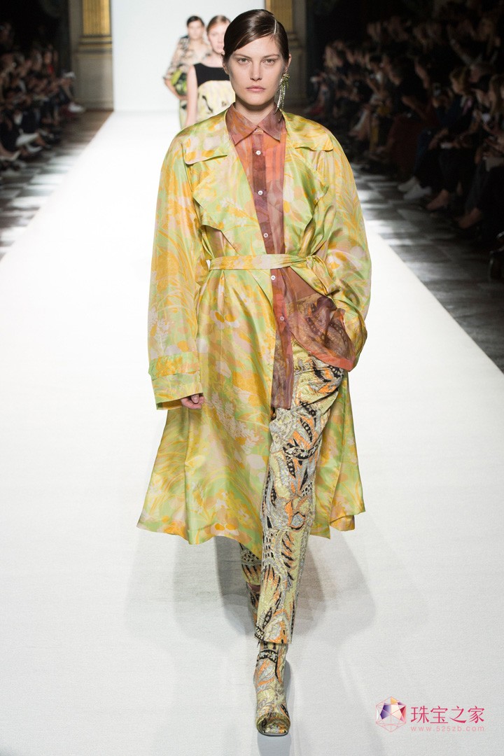 法国设计师品牌 Dries Van Noten(德赖斯·范诺顿)于巴黎时装周发布2018春夏系列时装秀,本季系列设计师用大面积的撞色印花,绸缎的面料材质以及叠穿和不对称元素的运用,表达了成熟女性对衣服的追求,大气、高贵、时髦又不失艺术气息。