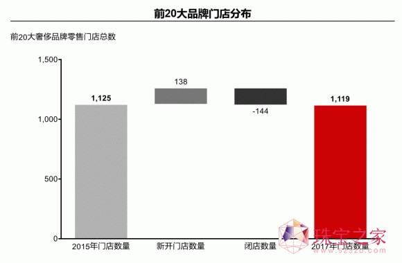 贝恩咨询指出,在中国市场的前二十大品牌中,有一半以上都选择了缩减实体零售网络规模,同时扩大单店面积。2017年,这20个品牌的门店总数为1119家,相比2015年减少了6家,只有少数快时尚品牌选择了快速扩大零售网络规模。