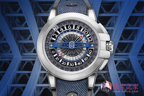 这款富有运动感的创新腕表采用独具一格的逆跳时分显示,中央同心圆布局呈现巧妙的不对称感。Project Z系列标新立异的独特理念造就一款风格鲜明的腕表杰作,突破传统时间和空间规则,独树一帜。精妙布局与复杂功能均造就每枚Project Z腕表的鲜明个性。过去十四年,Project Z系列忠实传承顶级机械制表精神,采用标新立异的现代设计。多年来,Project Z作品基于偏心功能指示、不对称元素及不平衡效果,通过强有力的设计达致稳定性能。相反,Project Z12采用同心层功能指示,呈现平衡有致的对称感。然而,表象之下另藏玄机。中央指针设于大型镂空蓝色表桥之下,运行不息。实际上,指针非仅游移,还会跳动。两枚指针在140度的区域中移动,当各自完成运行周期时,便会跳回起点。此逆跳景象每天在层叠交错的圆环中央上演26次。