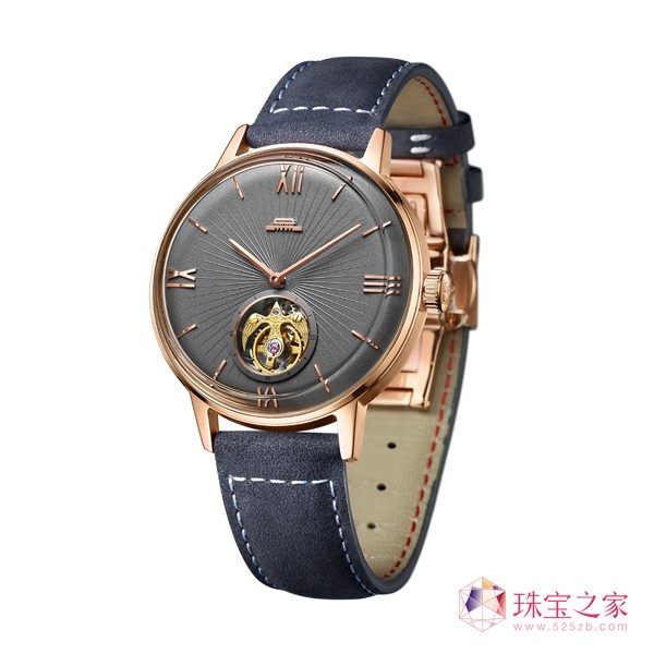 经典留白与丰富层次的映衬下赋予这款“潜锋系列”东方美学的腕表更多朴素艺术主张。拱形合成蓝宝石表镜硬度极高,更耐磨损;表盘油压放射状太阳纹纹路,从不同角度观察能体验出不同的美感效果;表冠油压象征品质和身份的“BJ”高端印记;而介于磨砂和细绒质感的疯马皮表带,风格粗犷,随着时间的推移疯马皮上留下的印记会越发光泽,成为拥有者独一无二的故事。