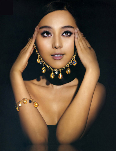 这组由范冰冰演绎的时尚大片,将金饰的魅惑、柔韧线条,非常绚魅的表达出来,摄影师运用黑底和肌肤的原色,将金饰的华贵金黄简洁的传达出来,让这些金属具有了动态的活力。