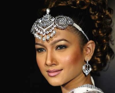 印度模特正在印度孟买的时尚展上展示比利时ORRA公司设计的钻石饰品。