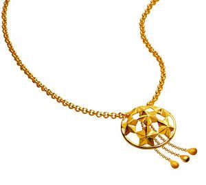 纯金首饰不用焊料焊接,它的接囗是怎么处理的呢?它是用无焊料焊接法,其原理是材料的自熔,即把温度加热到黄金的熔点,这时材料就会互相熔合在一起,达到焊接的目的。纯金首饰由于工艺的限制,它的结构与低成色首饰有所不同。如项链,低成色的产品开合处,可以用弹簧开合圈,而纯金项链只能采用S形的锁钩(如用弹簧开合圈、整个项链的含金量就会降低);还有戒指,低成色的可以镶上五光十色的宝石,而纯金首饰不宜镶嵌宝石(因性太软),而只宜刻花、錾字。总之,纯金首饰是可以焊接的,但尽量少焊为好。