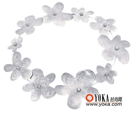 “白之绽放”(Blossom White)铂金项链(Pt 950),镶有明亮琢形钻石(钻石总重7.33克拉)。