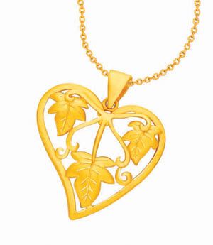 金叶珠宝•祈福金叶系列精品,为表达父母对儿女祝福的诚意与纯粹,特意选取千足金为制作原料,在黄金制底上加入镂空的或凸出的花纹,生动形象地呈现出叶脉的模样和蜿蜒游离的状态,流畅的线条围合出叶子的枝蔓,变形了的叶子的形状轮廓,成群组状态作为主要图案贴合在戒面或吊坠上,与底座自然地形成一个完美整体,亲切而又大气。金叶珠宝•祈福金叶系列产品源于日常生活中人们最习惯的亲情,然而也就是这份最习惯的亲情最能触动人心中敏感的那一部分。“儿行千里母担忧”儿女无论走到哪里都带着父母的掂念。“祈福系列”因这份内涵而亲情弥漫。没有什么比“祈福系列”这样的杰作更能表达父母给子女的谆谆教诲与连绵不断的祝福了。送一份既时尚又寓意深远的“祈福金叶”给即将远行的儿女,让这份亲情无时无刻不弥漫在他们身边,让感恩永存心底。