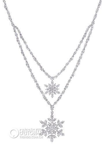 海瑞•温斯顿雪花造型项链,双层的设计丰富了佩戴时的视觉效果。
