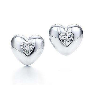 18K白金穿针心形耳环。圆形明亮式切割钻石总重0.08克拉,成色等级I,净度等级VS。