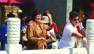 在刚刚过去的这个周末,津巴布韦总统夫人格蕾丝·穆加贝再次光顾秀水街,由于是秀水的老顾客,她径直来到了五层选购珠宝。一位市场工作人员告诉记者,总统夫人偏爱“DIY”个性首饰,几条珍珠项链的配饰都是自己挑选搭配的,她还将其中一条项链拆散,做成了两条手链。看见还剩余几颗珍珠,夫人又将其做成了耳环,送给了自己的朋友。在购物过程中,总统夫人还不时冒出几句中文,让导购惊讶不已。