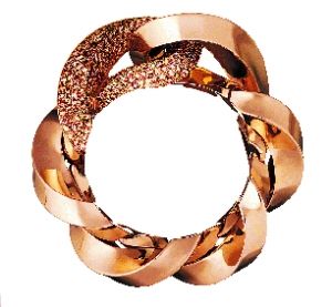珠宝品牌们都将玫瑰金的这种柔和淋漓尽致地表现到产品中,最让人印象深刻的是BVLGARI宝格丽2008Parentesi玫瑰金系列,包括密镶钻的体积感戒指、耳钉、圆形吊坠与项链。纤长动感的镂空图案令这些珠宝与众不同,而玫瑰金的运用与密镶钻的璀璨更添活力。但这股玫瑰金热似乎还不够,BVLGARI近日还宣布推出China 2008特别版Parentesi玫瑰金戒指与圆形吊坠项链,以庆祝2008年奥运会在中国举行。