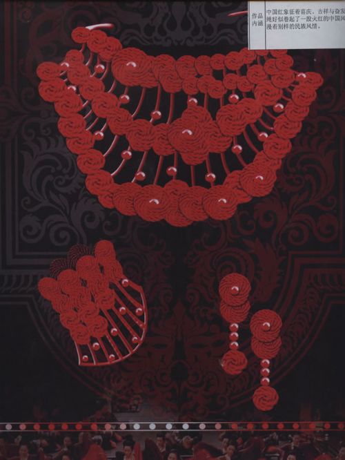 中国红象征着喜庆、吉祥与奋发。旋涡造型的红绳好似卷起了一股火红的中国风,也让空气中弥漫着别样的民族风情。