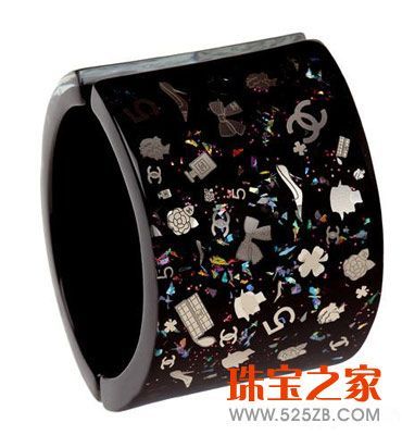 CHANEL欢乐气氛的手镯闪亮着五彩光芒,密密藏满香水、高跟鞋、蝴蝶结和山茶花。