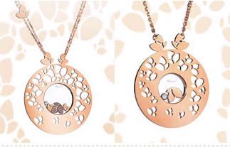 此外,优雅时尚的 Happy Diamonds手镯也设置一个小巧的网状玫瑰金花盘和一颗活动钻石,彩色丝绳上还有一朵未镶嵌宝石的纯净莲花。和垂饰的项链一样,此皮绳的一侧缀有黄金圆圈和一对迷人的莲花。简约,却令人欣喜。